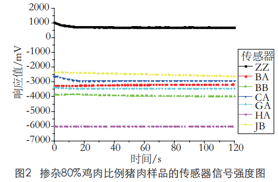 豬肉腸摻雜雞肉樣品的傳感器信號分析