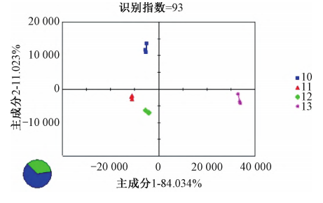 采用Alpha soft軟件對所得數據進行分析,利用主成分分析(PCA)法,通過對原始數據向量進行線性變換,對多個數據進行降維處理,轉化為少數綜合指標。