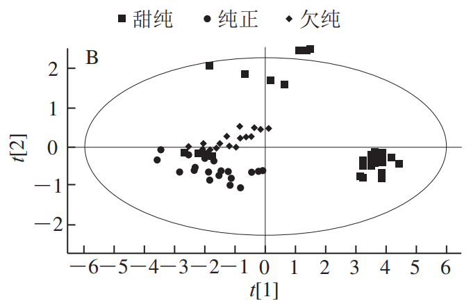 電子舌對甜純、純正、欠純茶湯響應的多變量分析