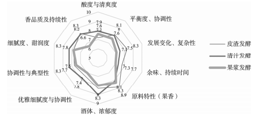 注:1為清汁發酵;2為皮渣發酵;3為果醬發酵,下同