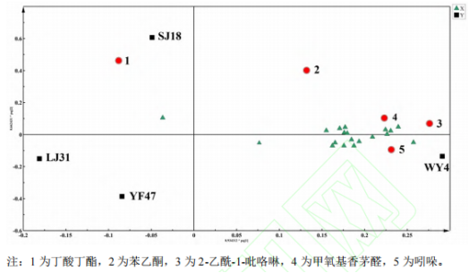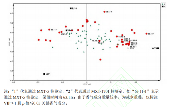 圖4 OPLS-DA模型因子載荷圖(快速氣相電子鼻)