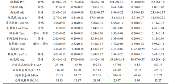 表2 不同烹飪方下芫根中的游離氨基酸組成及含量