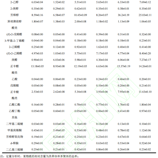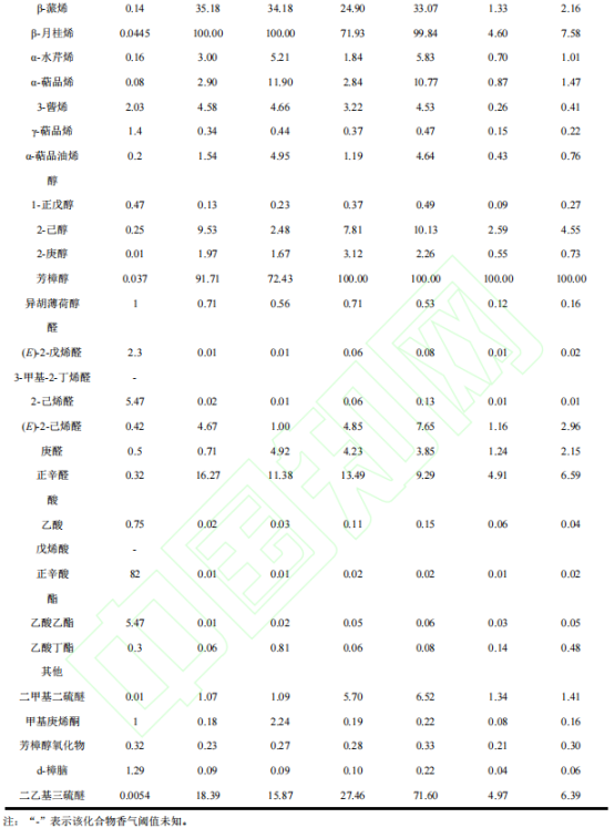 表 4 甜橙精油中揮發性化合物的 ROAV 值