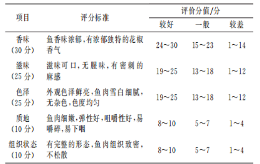 表1 花椒魚片感官評價標(biāo)準(zhǔn)