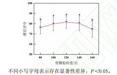 圖1 青稞粉粒度對漿水青稞奶茶感官評分的影響