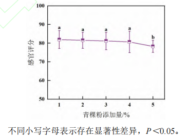 圖2 青稞粉添加量對漿水青稞奶茶感官評分的影響