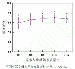圖3 漿水焦糖奶茶比對漿水青稞奶茶感官評分的影響