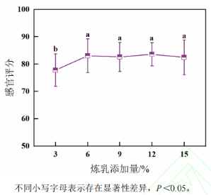 圖4 煉乳添加量對漿水青稞奶茶感官評分的影響